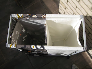 Me he autofabricado un cesto para la ropa sucia con dos compartimentos, el de ropa blanca y el de color. Como fan e incondicional usuaria de ikea que soy, he utilizado este soporte antonius y las telas patricia y minna.