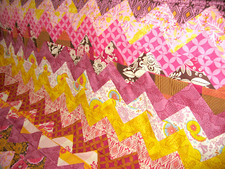 Pues eso, buscando quilts que salgan un poco de lo común, empecé buscando cosas irregulares y encontré esta maravillosa diseñadora denyse schmidt que hace unas colchas muy bonitas. Parece ser que trabaja los quilts a modo de collage, de forma muy intuitiva. La irregularidad en cada bloque y una limitación en la paleta cromática hacen el resto...